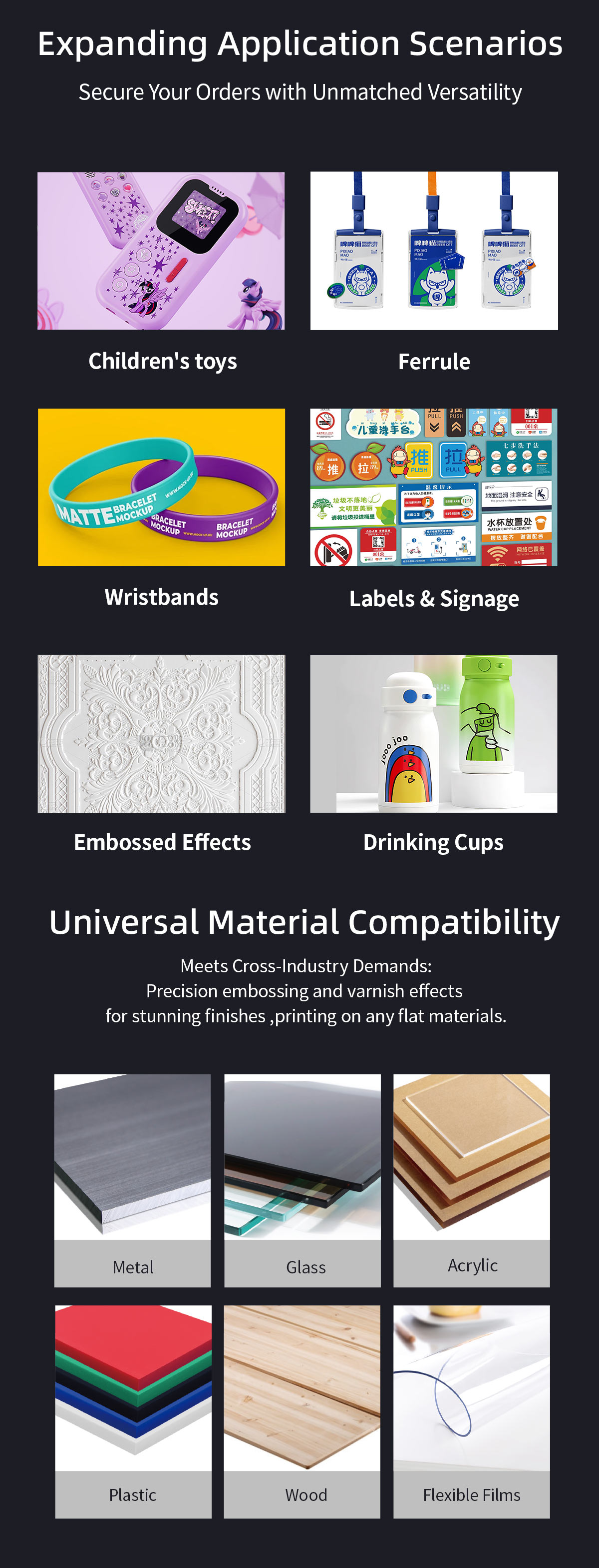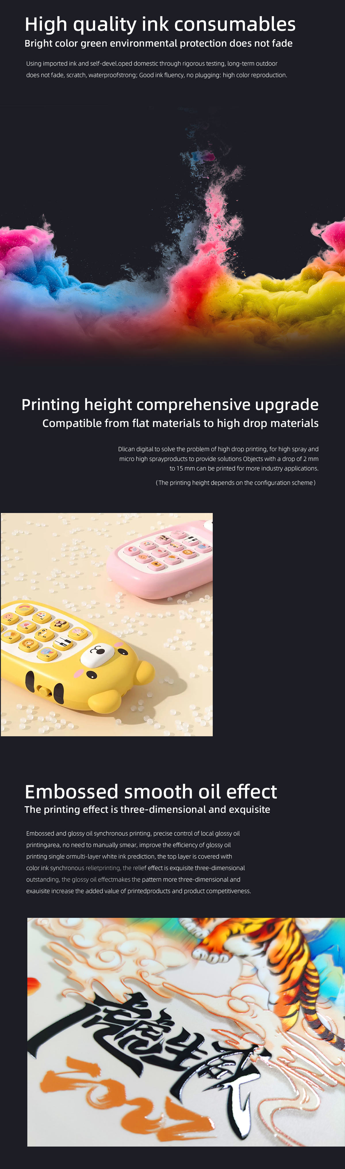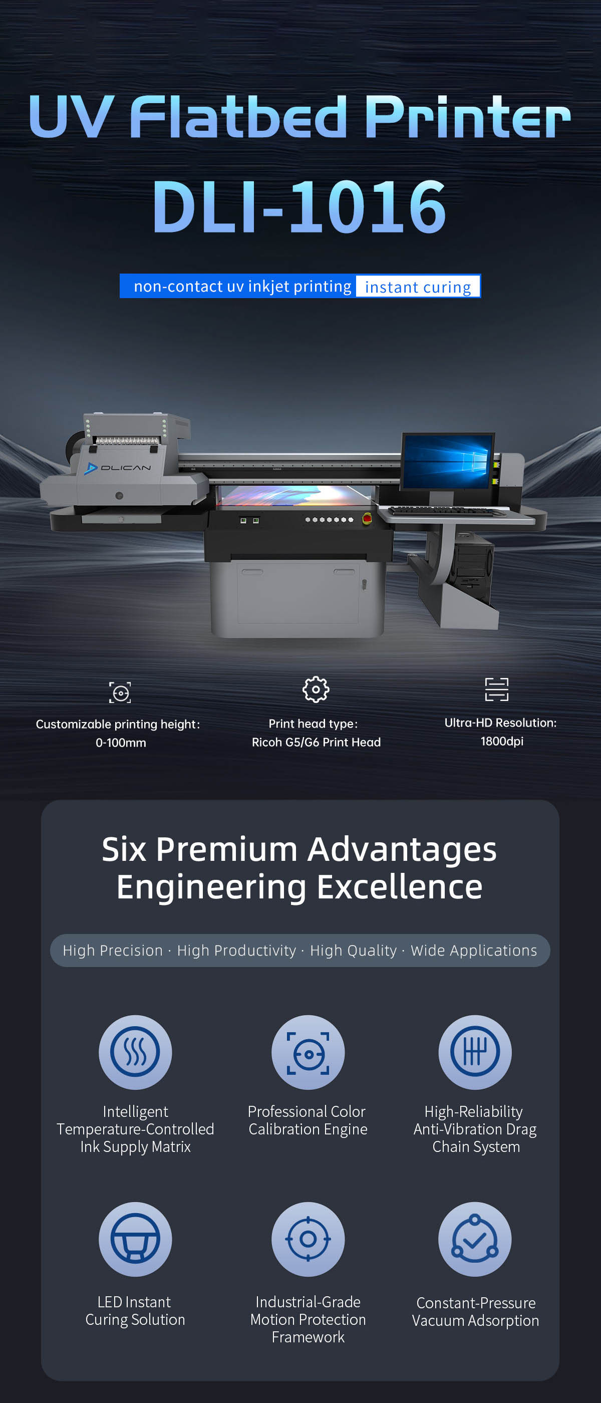 Product description:Printing size 1*1.6m, compact body flexible to meet a variety of printing needs, stable and efficient, white glossy oil synchronous printing, high resolution co···