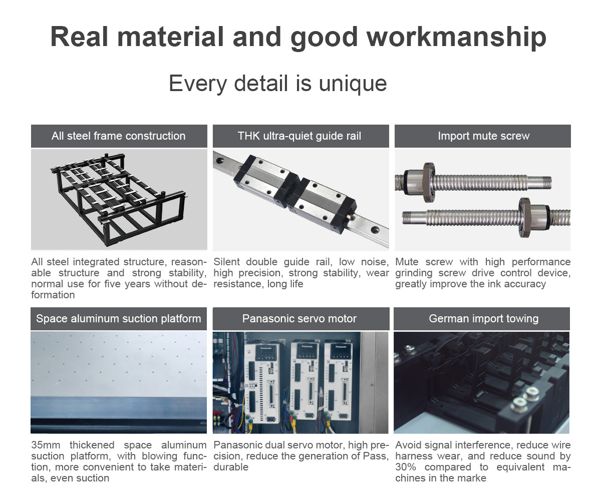 Product description:Printing size 1.2*1.5m, compact body flexible to meet a variety of printing needs, stable and efficient, white glossy oil synchronous printing, high resolution ···