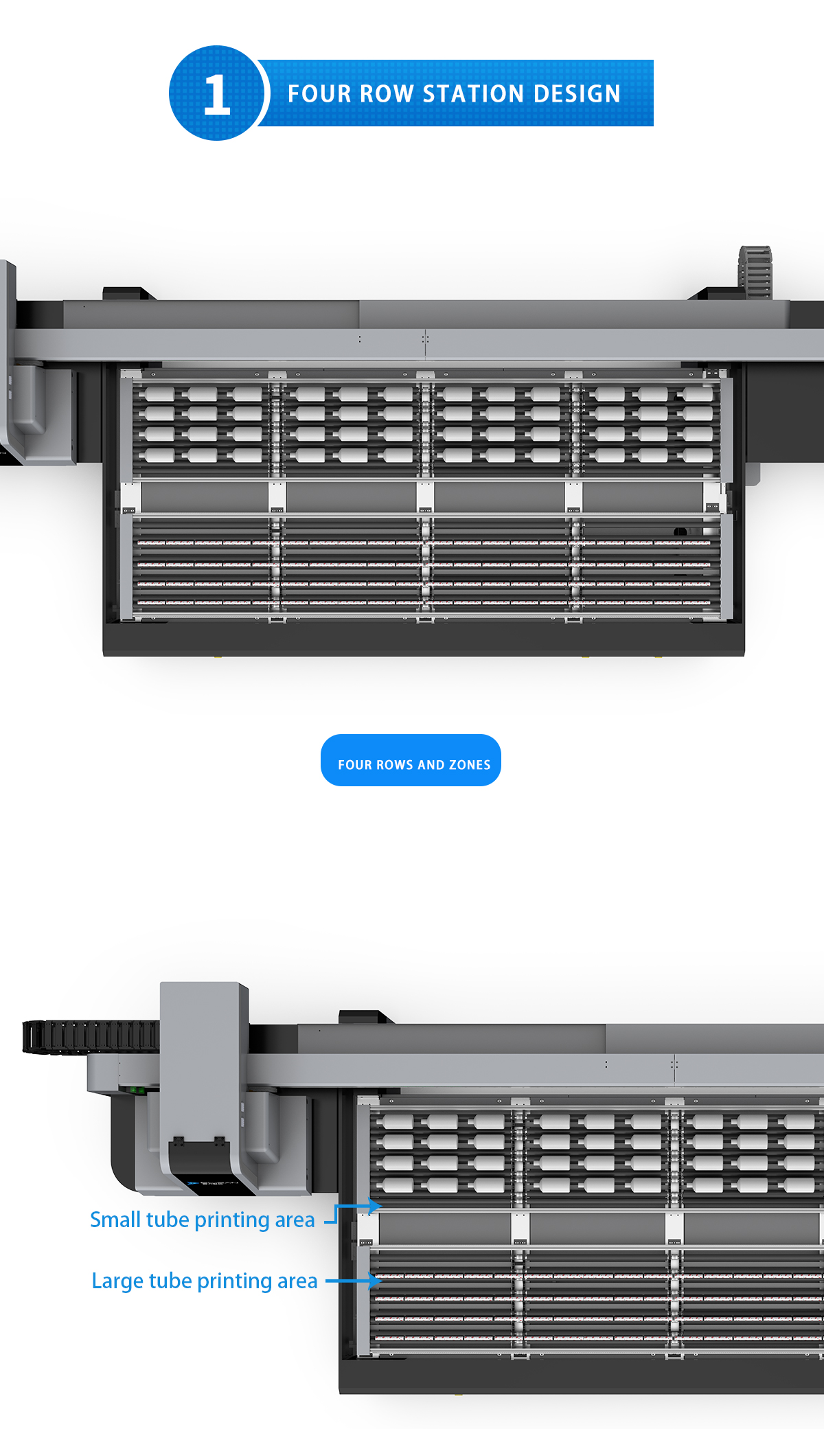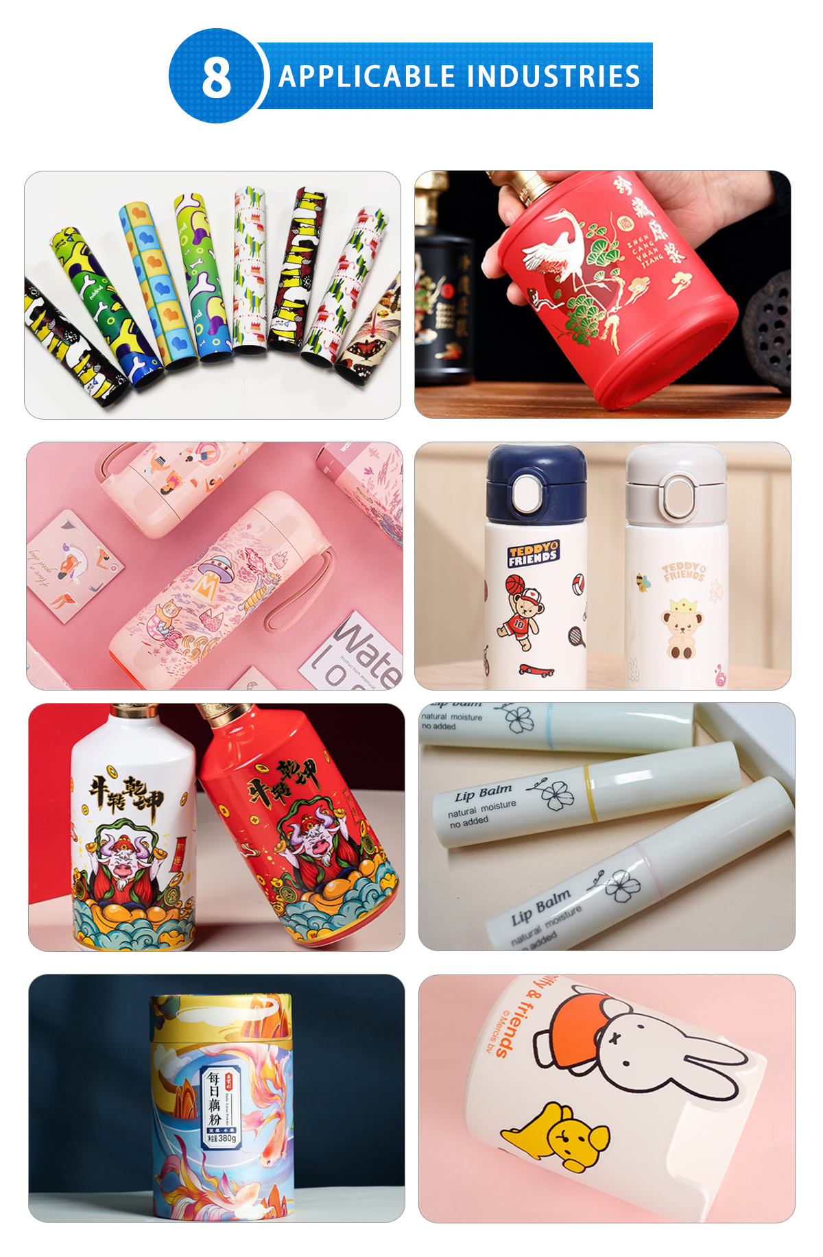 Product description:Dingli four-row double-station uv cylinder printer can print patterns on the surface of the cylinder, widely used cylinder, wine bottle, thermos cup, metal tube···