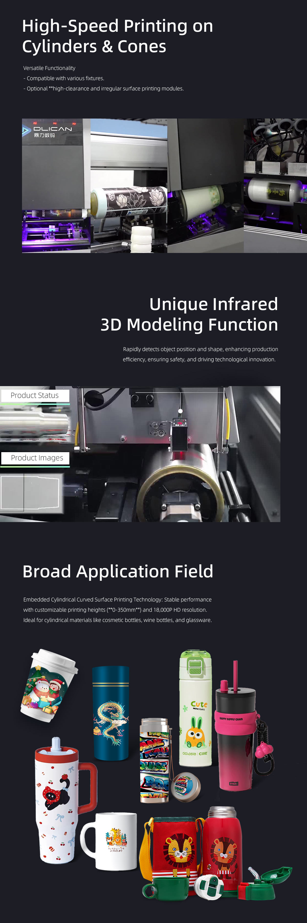 Product description:Dlican DLI-360 Helical Cylinder Printer Core Technology: Supports 360° seamless printing on cylindrical surfaces with high-precision spiral rotation mechan···