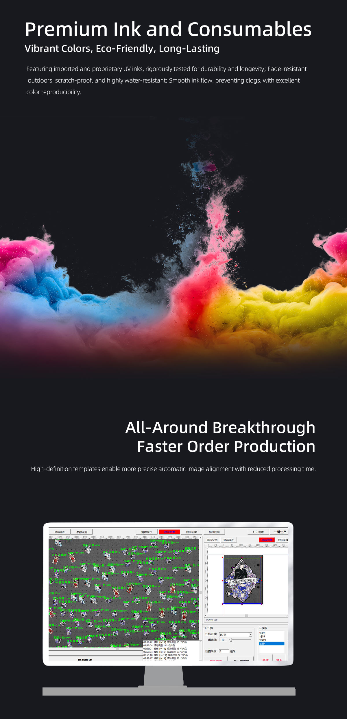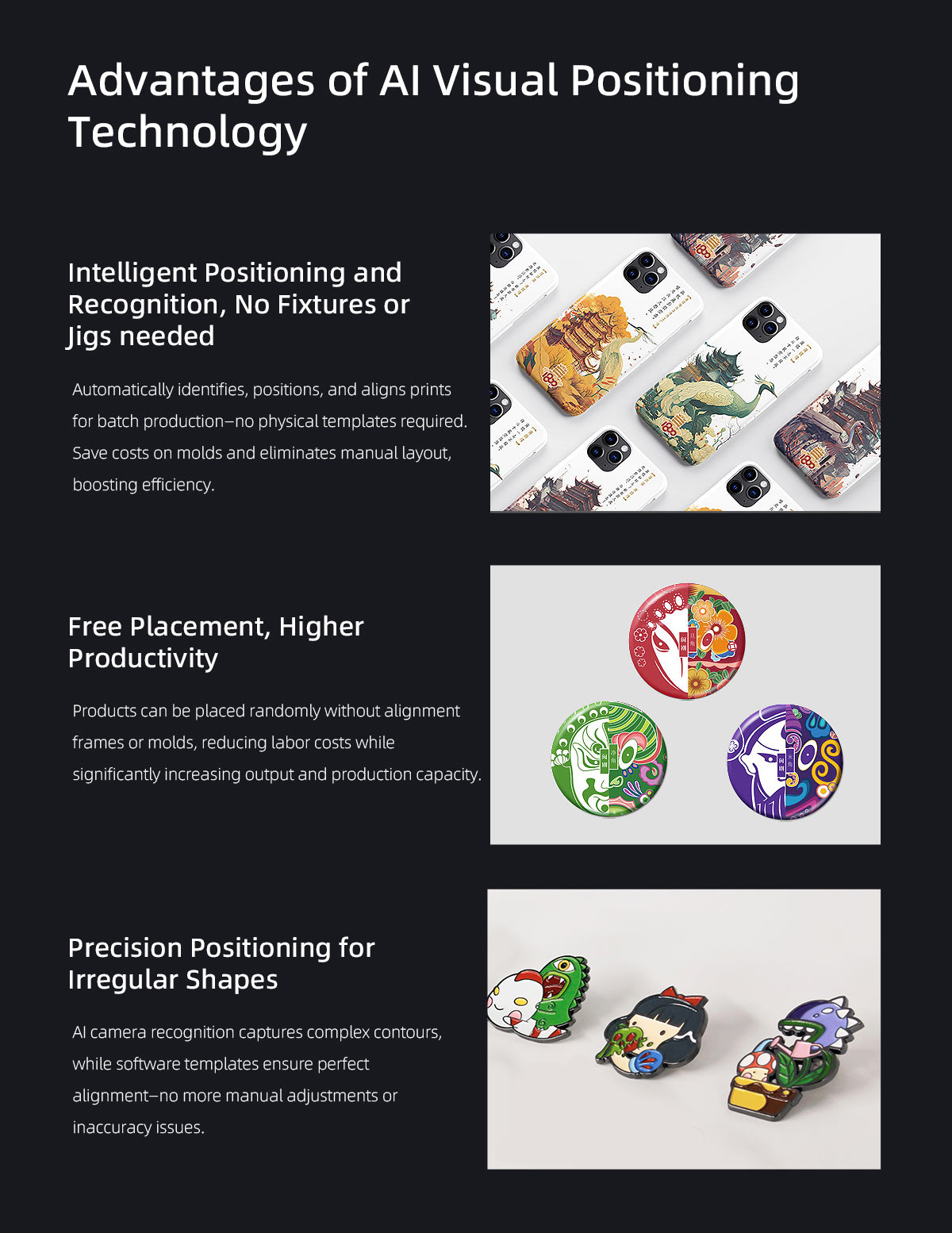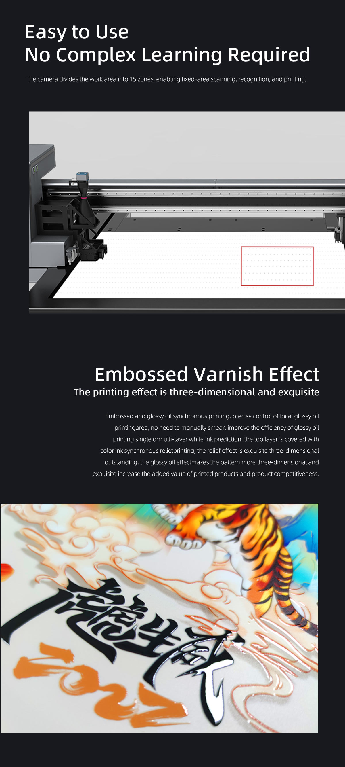 Product description:Vision positioning UV printers eliminate the need for printing positioning frames, solving the challenges of positioning various irregularly shaped materials. T···